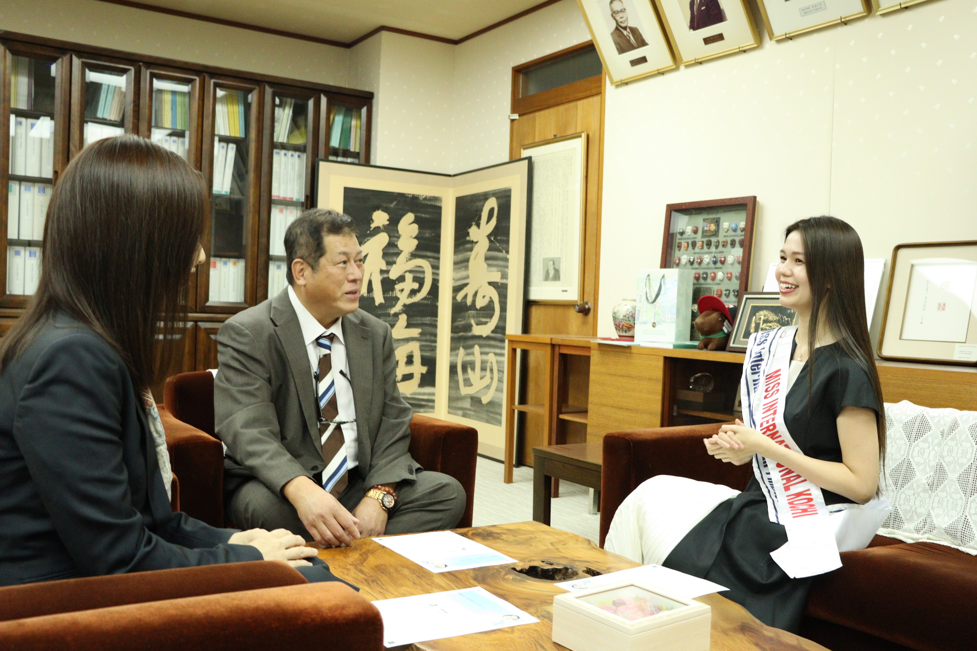 井上医学部長、大坂看護学科長にミスインターナショナル高知代表の報告をしました。(令和7年11月26日)