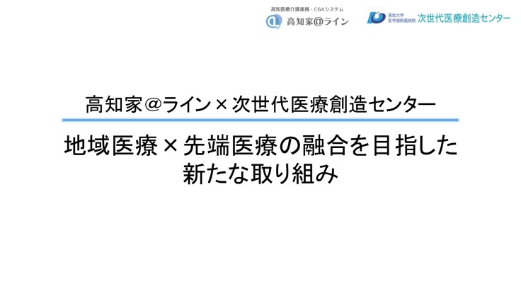 地域医療を支えるネットワーク体制の機能強化高知県全域の医療機関や介護施設等をICTで結ぶ「高知家@ライン」(高知大学医学部公衆衛生学准教授宮野伊知郎)と、高知大学医学部附属病院(次